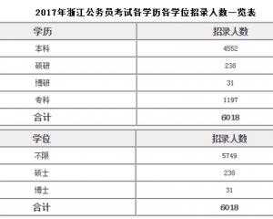 2017年浙江省公務員考試各學歷招錄人數統計分析