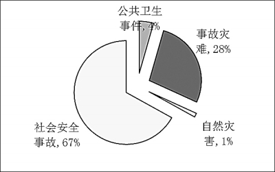 學校安全事故分類的標準有很多,本報告以引發事故的表現形式進行分類分析,從所收集的事故分析,事故災難主要有溺水、交通、踩踏、倒塌、火災、觸電等;社會安全事件主要有暴力斗毆、自殺、自殘、綁架、性侵犯等,社會安全事件有被動受傷害的情形,也有主動傷害別人、侵害財產、破壞秩序的情形;自然災害主要有洪水、地震、滑坡等;公共衛生事件主要有各類中毒、傳染病等。在1.4萬余件學校安全事故案例中,事故災難3839個、社會安全事件9369個、自然災害事故173個、公共衛生事件618個。