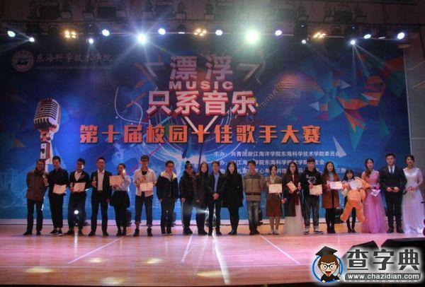 2015年11月27日,由共青團浙江海洋學院東海科學技術學院委員會主辦、學生會承辦的浙江海洋學院東海科學技術學院漂浮只系音樂第十屆校園十佳歌手大賽決賽在浙江海洋學院東海科學技術學院體育館隆重舉行。知名原唱歌手中國好聲音浙江賽區10強選手于鄭偉學長,浙江省音樂協會會員、浙江省鋼琴協會理事費凡老師,浙江省音樂協會會員、舟山市音樂家協會常務理事夏昊先生,浙江省青少年教育核心輔導教師組成員、資深音樂教育家陸宗瑜女士,以及加拿大籍華裔歌手張晶女士應邀出席并擔任此次比賽評委。本次比賽更有嘉賓:黨委副書記閆海強書記、機電工程系副主任計青山老師、教學科研部副部長商弘老師、學工部副部長兼團委副書記蔡阿雄老師,以及近3000名東海科學技術學院的學生觀看比賽。由金亦威、林翔翔、鄔宇翔擔任本場比賽主持。