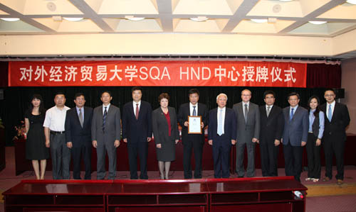 9月5日上午,對外經濟貿易大學SQA HND中心授牌儀式在對外經貿大學誠信樓國際會議廳隆重舉行。中心白章德主任、蘇格蘭學歷管理委員會總裁珍妮特·布朗博士,對外經濟貿易大學施建軍校長、趙忠秀副校長,對外經濟貿易大學國際交流合作處、繼續教育學院的相關領導、教師和學生以及中心相關人員等出席了授牌儀式。